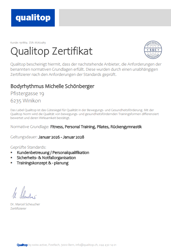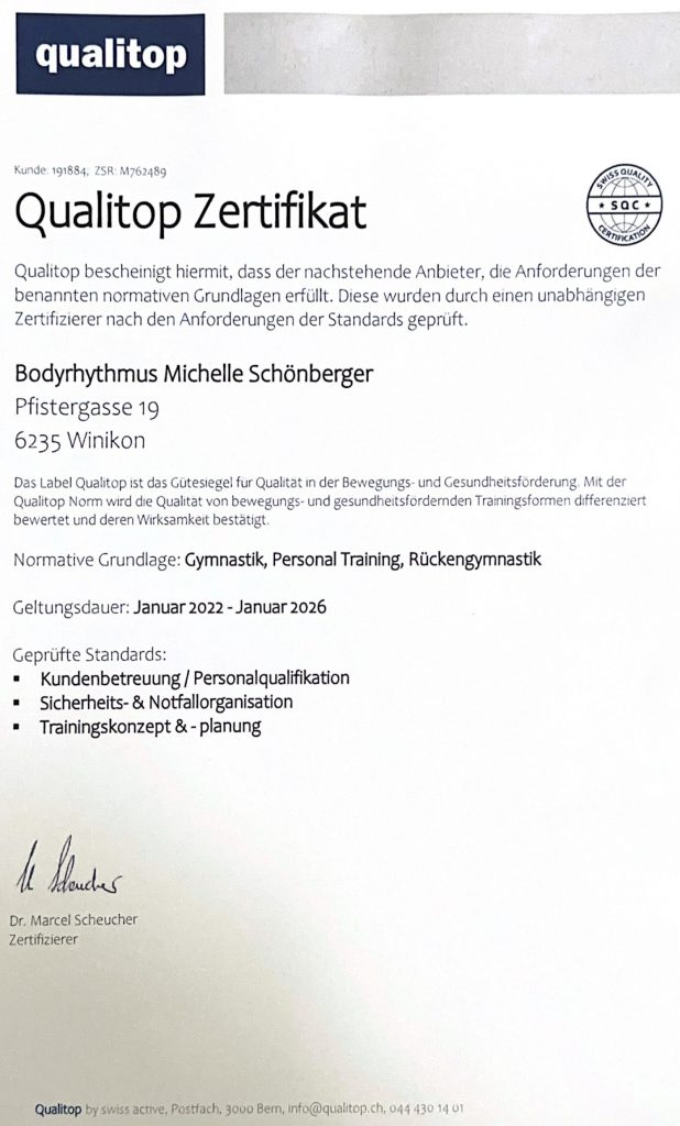 Ich bin krankenkassenanerkannt. Viele Schweizer Krankenkassen erkennen mein Gesundheitstraining an. Bitte klären Sie direkt mit Ihrer persönlichen Krankenkasse, ob und in welchem Umfang die Kosten übernommen werden.